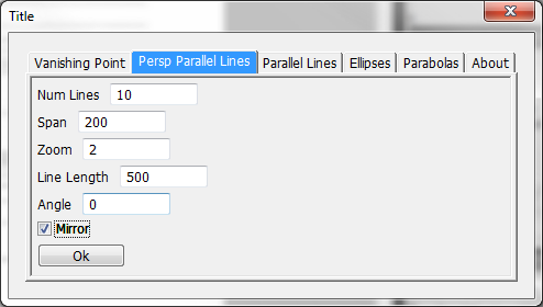 Num Lines: Number of lines to draw. Lines are drawn starting with the outside of the span and stepping toward the horizon. Since there are an infinite possible number on lines and since they get bunched together so densly after a while, only the first few lines are drawn.